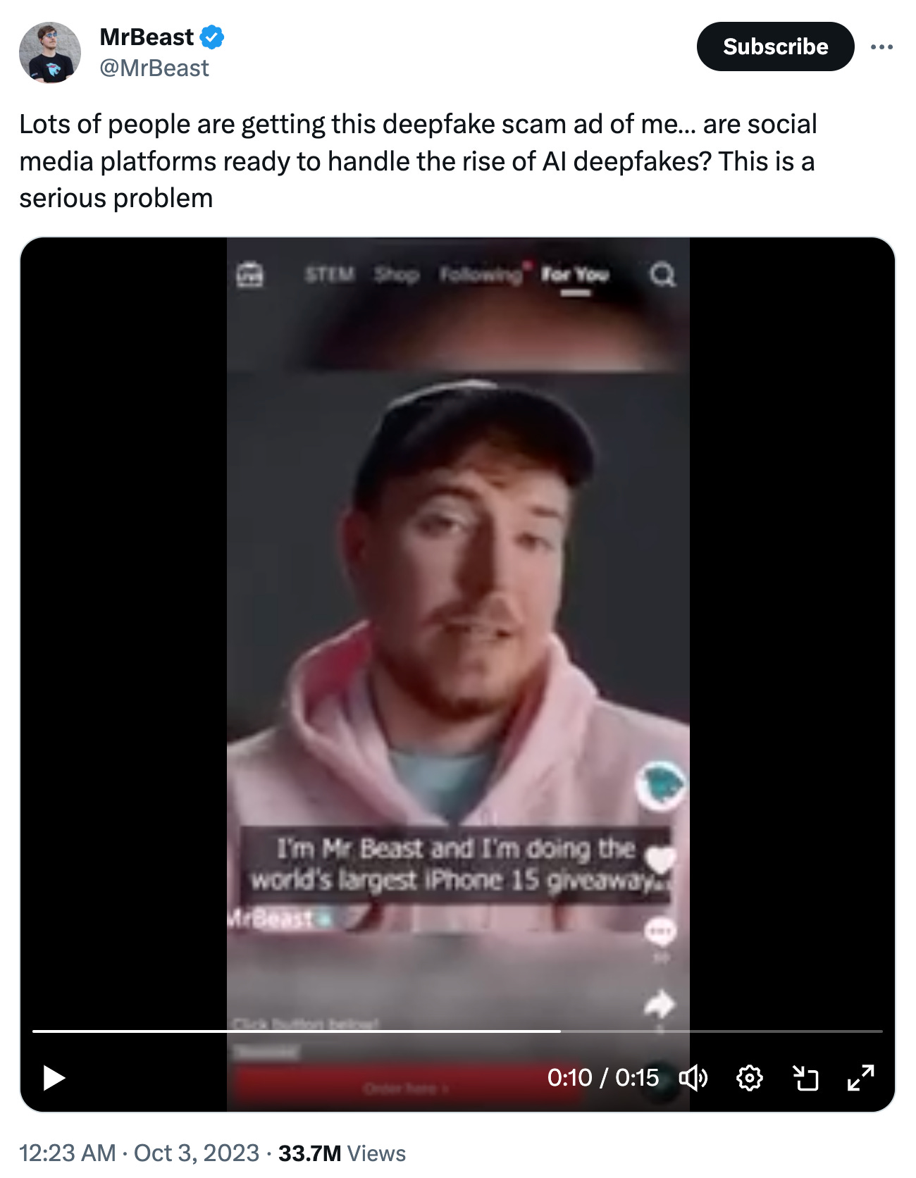 It also happened with Mr Beast, as an AI deepfake using his image was announcing a fake iPhone giveaway.