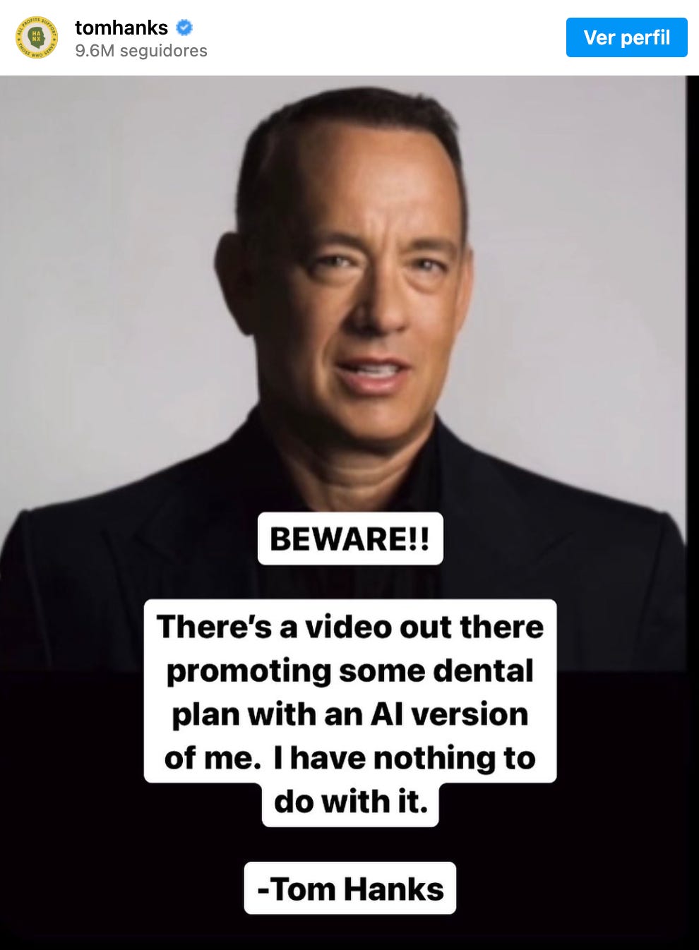 Other celebrities have been targeted: recently, it happened with Tom Hanks, as an AI version of the actor was used to promote a dental plan. He then posted the image below on Instagram: