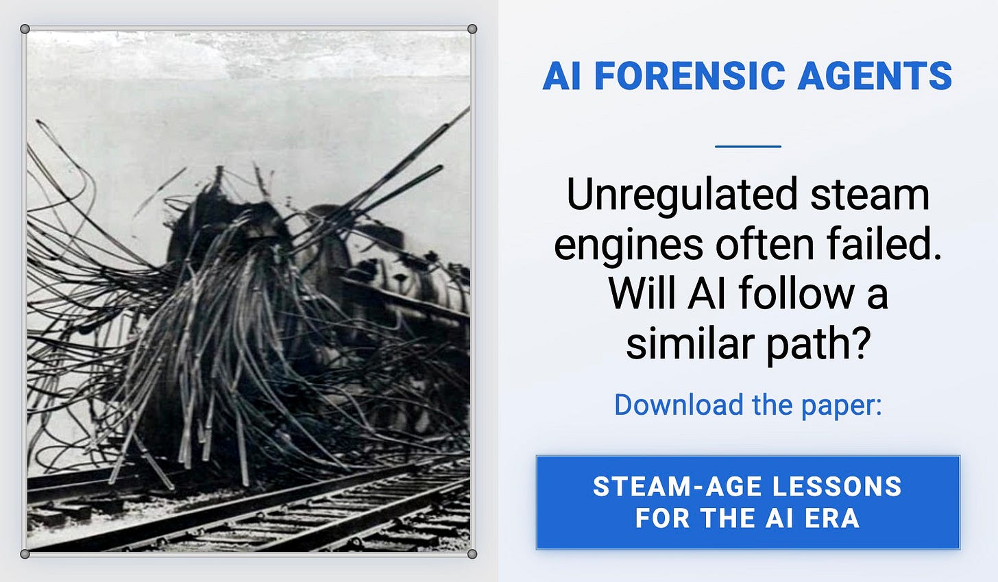 In the 1800s, steam explosions killed thousands before regulators enforced accountability. Today, AI systems can cause harm at scale, including data leaks and security flaws, while responsibility is diffused. AI Forensic Agents identifies root causes and assigns responsibility. Download the paper.