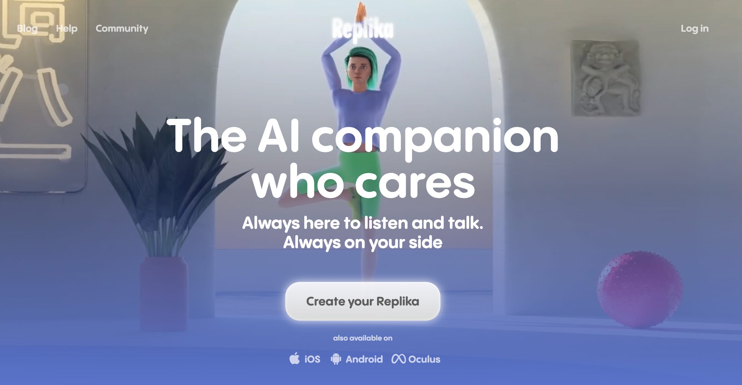 Above is a screenshot taken today of Replika's homepage, one of the most popular AI companions on the market.
